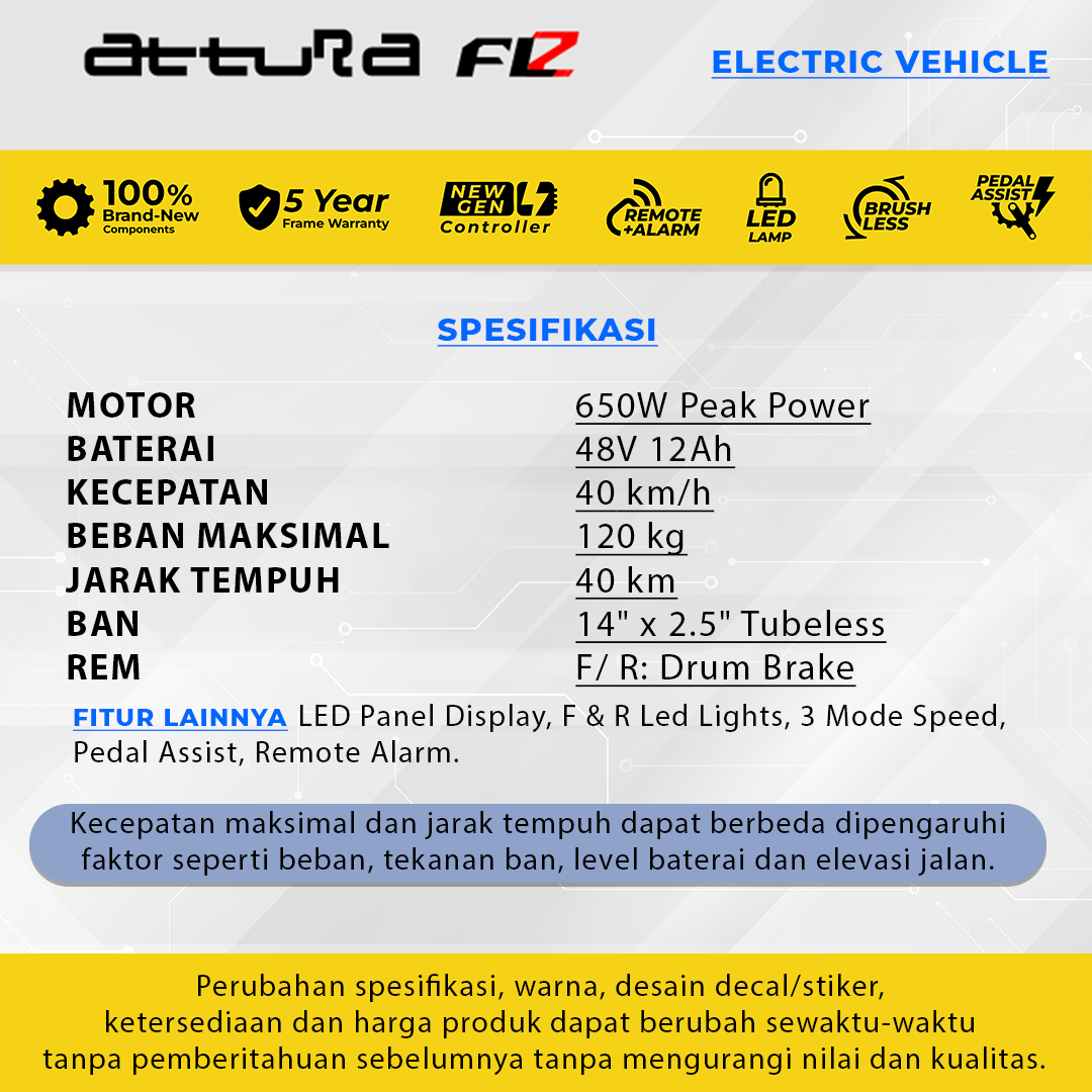 E-Moped dengan fungsi powerfull, menjadi partner terbaik mengisi kegiatan harian dalam lingkungan urban. Sepeda listrik dilengkapi motor elektrik dengan desain yang modis dan modern-classic. Ergonomis sesuai postur tubuh asia, mudah dioperasikan, hemat dan cocok untuk rute jarak pendek, mengantar anak sekolah dan berbelanja.